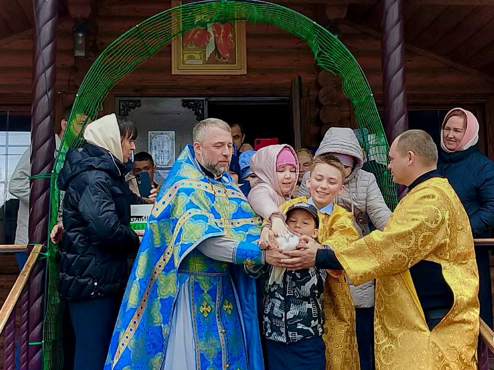 На праздничной литургии по благословению настоятеля храма иерея Анатолия Епифанова Реут Б. М. читал Апостол, также выполнял алтарные послушания.