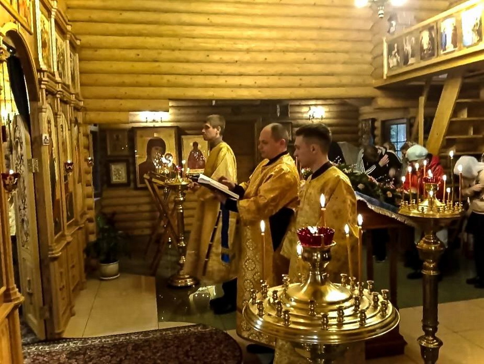 На праздничной литургии по благословению настоятеля храма иерея Анатолия Епифанова Реут Б. М. читал Апостол, также выполнял алтарные послушания.